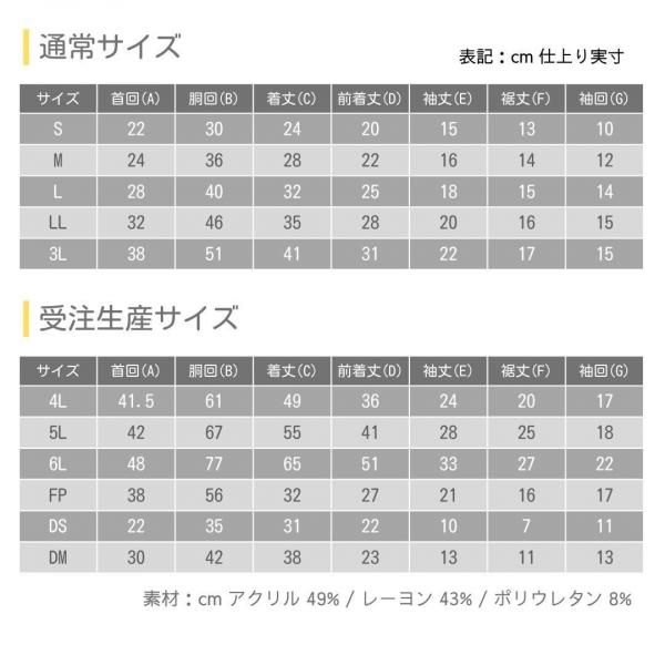 サイズ選びの際は「着丈」「首回り」「胴回り」の順でサイズ表をご覧下さい。